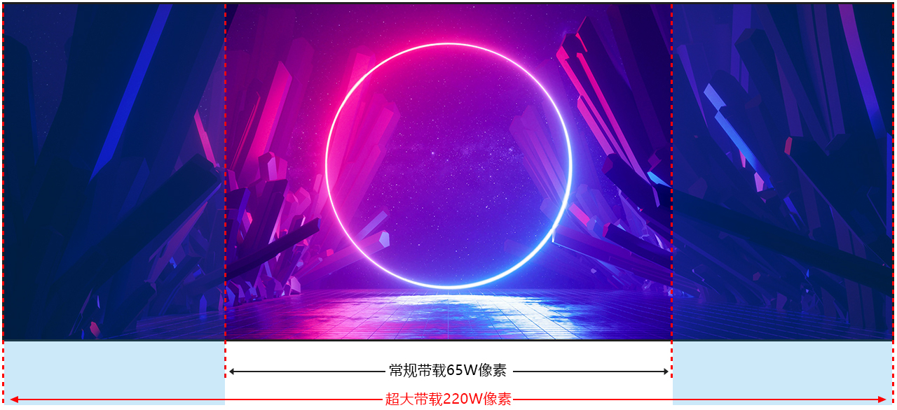 Breaking through the tradition with unique super large loading function,the loading capability of single port can reach 2.2M(2048×1080@60Hz)