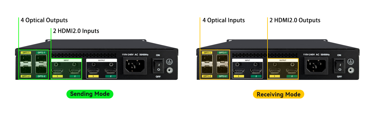 Lossless long-distance transmission of signals with no delay and no image quality loss, ensuring high-definition display.Used with single-mode optical modules transmission up to 10 km. Used with multi-mode optical modules transmission up to 300 m.